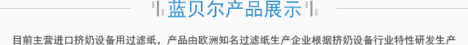 濟南藍貝爾工貿(mào)有限公司主要產(chǎn)品擠奶設(shè)備過濾紙,牛奶過濾紙,擠奶機過濾袋,目前主營進口擠奶設(shè)備用過濾紙,產(chǎn)品由歐洲知名過濾紙生產(chǎn)企業(yè)根據(jù)擠奶設(shè)備行業(yè)特性研發(fā)生產(chǎn),產(chǎn)品符合歐盟食品接觸標準及FDA食品接觸標準,產(chǎn)品在擠奶設(shè)備過濾紙行業(yè)占有70%以上的份額。并通過了SGS標準技術(shù)檢測中心按國標食品級標準進行的檢測。產(chǎn)品適用于各種擠奶設(shè)備品牌,本公司目前獲得該區(qū)域產(chǎn)品營銷資格。產(chǎn)品已用于國內(nèi)各大乳企所屬...